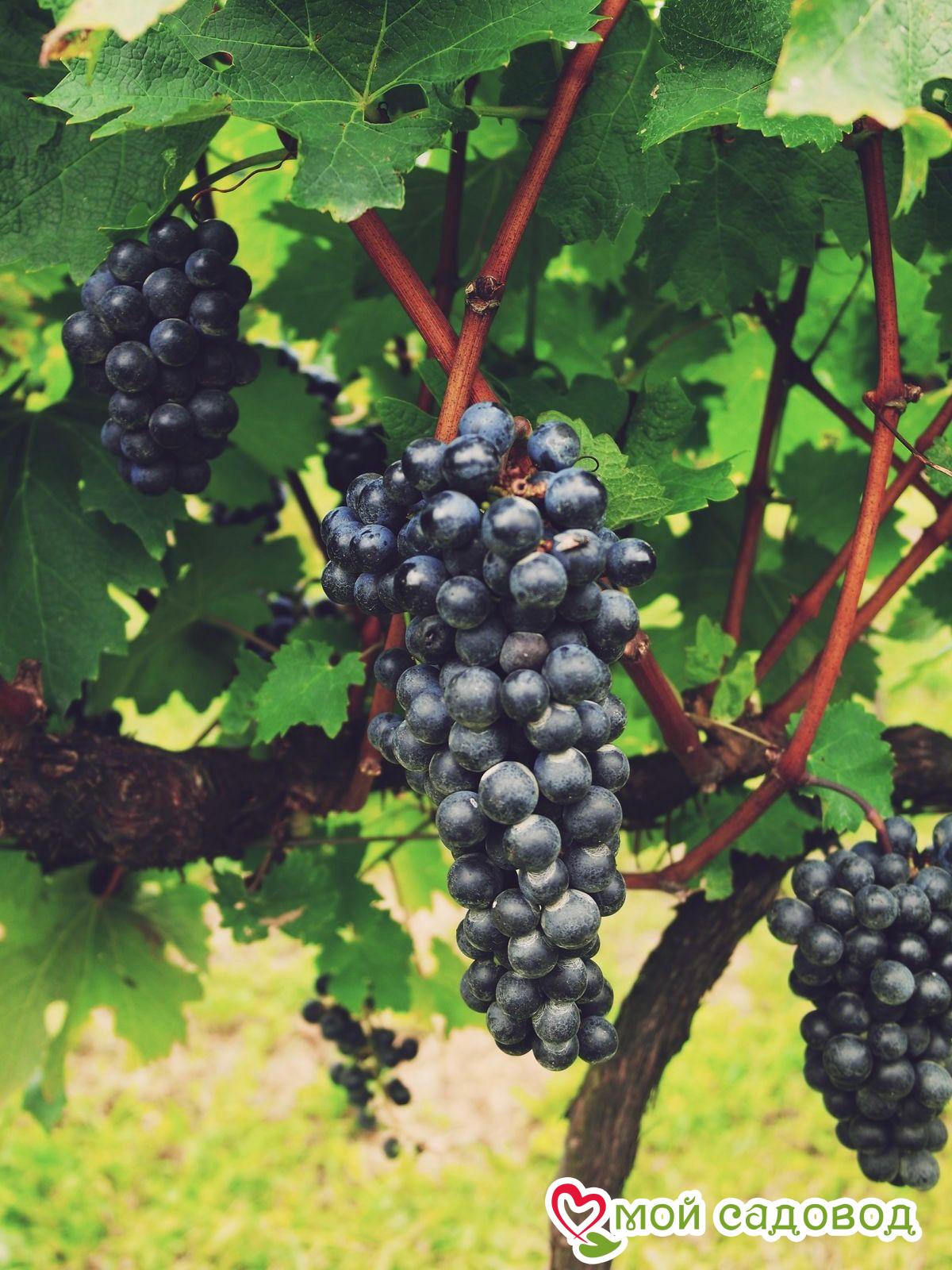 Магазин Мой Садовод, рекомендации по уходу Уход за виноградом сводится к регулярным поливам в сухую погоду, подкормкам и формированию куста. Для подкормки используют минеральные и органические удобрения (перепревший навоз, компост). Ранней весной кусты виноград поливают полным минеральным удобрением, растворенным в воде, перед цветением такую подкормку повторяют. Перед созреванием вносят фосфорно-калийные удобрения, а после сбора урожая проводят подкормку калием для повышения зимостойкости растений. Кроме того для лучшего вызревания лозы рекомендуется удаление пасынков и прищипывание верхушек в начале сентября. Формирование куста Винограда. Для формирования виноградных кустов необходимо установить надежную опору. Самая простая представляет собой два столба с несколькими рядами проволоки между ними. По мере роста побеги подвязывают к проволоке, задавая им нужное направление. Формирование куста винограда начинают с первого года, оставляя не более двух здоровых побегов у основания, остальные выламывают. На второй год на кусте оставляют по три почки на каждом побеге, на третий год на каждом плече оставляют 2-3 сильных побега, остальные удаляют.